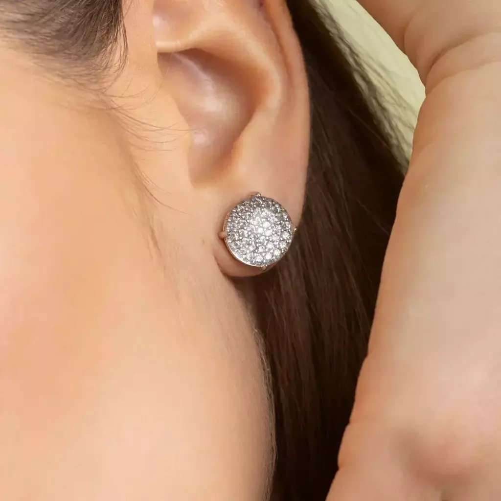 1. Dimensões e Peso Altura: 1,2 cm Largura: 1,2 cm Peso: 6,1 g 2. Metais e acabamentos Cor do banho: Rhodium Tipo de acabamento: Polido 3. Pedras ou componentes Tipo de pedra/componente: Zircônias e acrílico Cor: Incolor Lapidação: Brilhante e cabochão Tipo de cravação: Pavê e garra